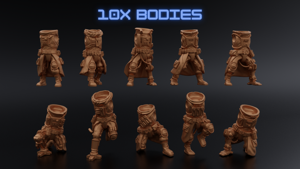 This is a 3D-printable digital kit containing over 80 parts that allow you to print 28mm scale Skytar Hunter miniatures.