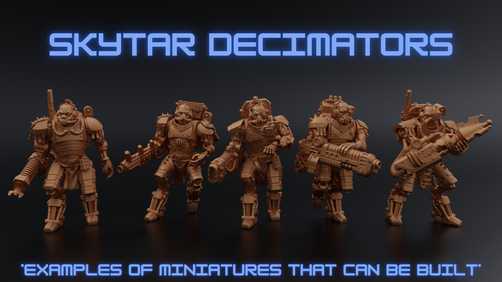 The specialists of the Skytar legions, able to bring to bear a large variety of weapons. They all bring large backpacks to the field to supply them with ample ammunition to blast your foes with thermal energy, plasma, electricity or even slather them in radiation!