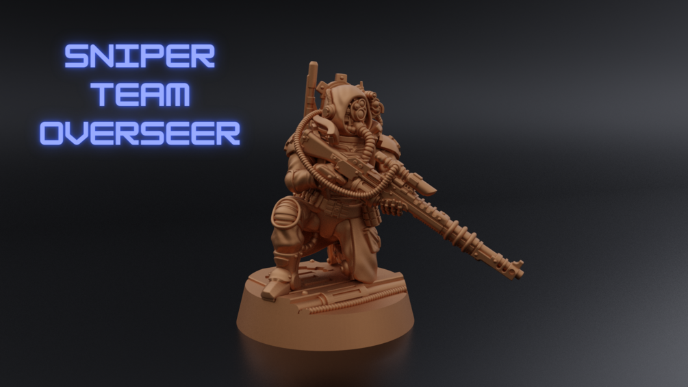 These miniatures will fit perfectly on 60mm round bases in case of the teams, though the sniper can be put on an oval base separately if that is what you prefer.
